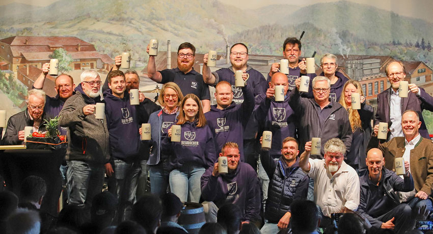 Die Mitarbeiter der Hirschbrauerei Heubach bei der Jubiläumsparty im April
